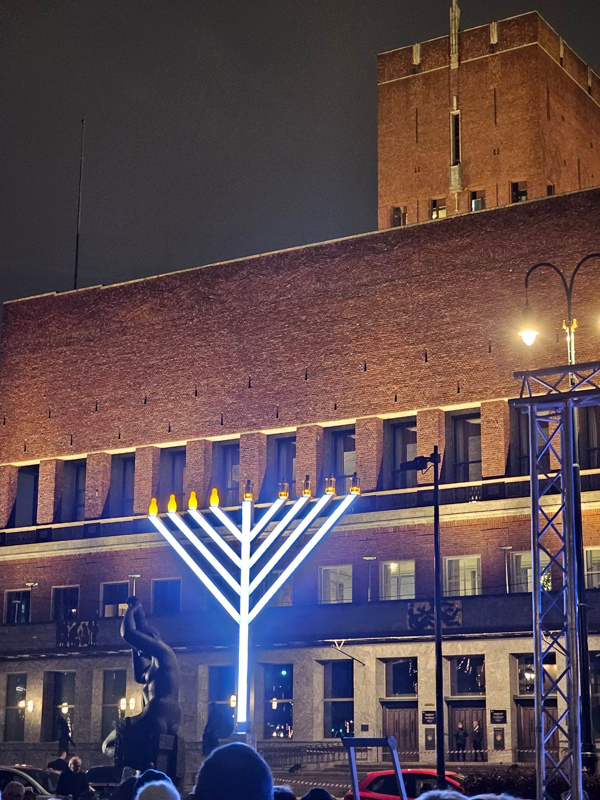 Det ble veldig bra oppmøte og fantastisk stemning på Chabad Norges Ḥanukka-feiring på Rådhusplassen i går. Det er både systematisk og sporadisk opptak av programmet, men i mellomtiden har jeg transkripsjon av talene: